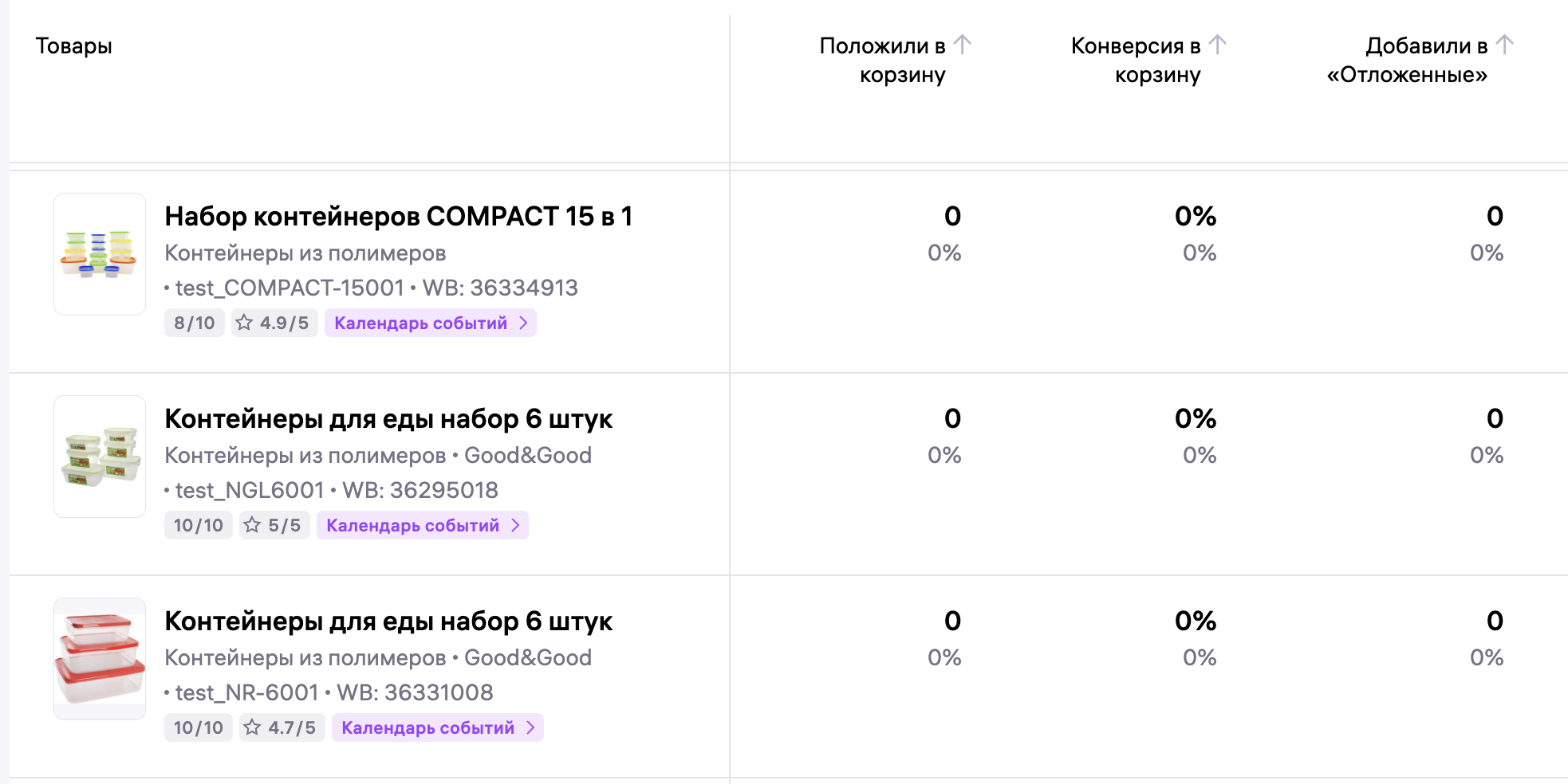 Пользовательские подборки — неочевидный маркер интереса к товару, который сложно отследить селлеру. «Отложенное» в этом плане более открытый показатель для анализа — количество таких откладываний отображается в аналитике наряду с добавлениями в корзину и покупками.