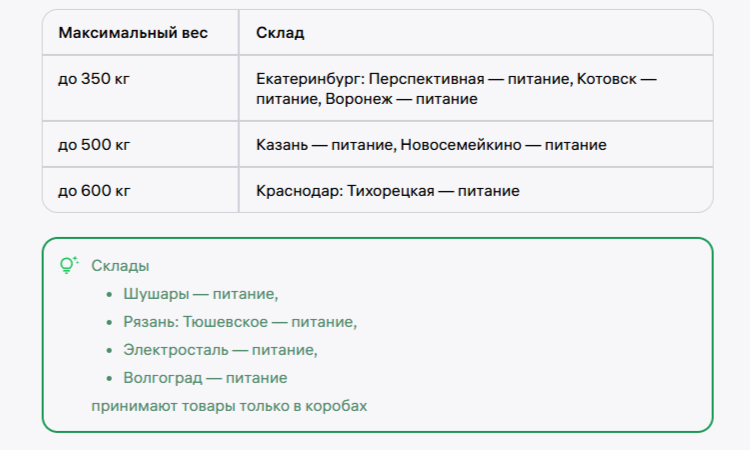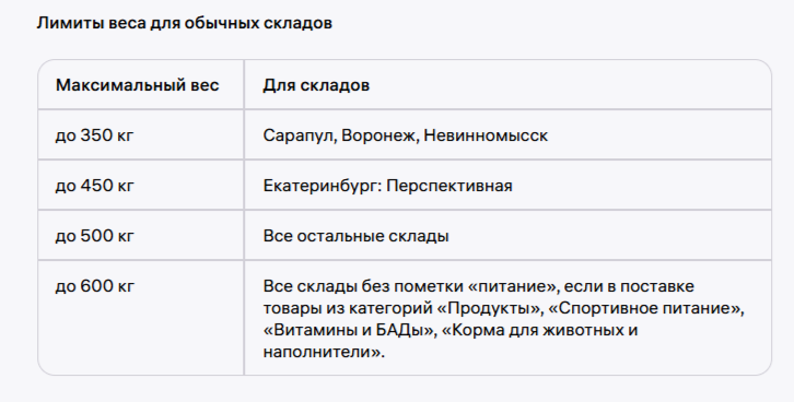 Уточнить ограничения по весу можно непосредственно на складе.