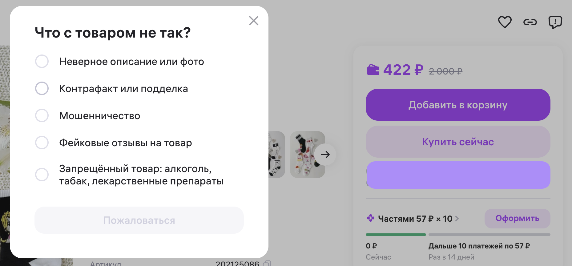 Если увидели, что другой селлер нарушает правила — сообщите об этом через иконку с восклицательным знаком.