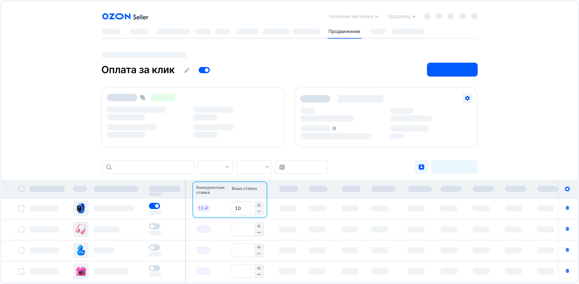 Оплата за клик Озон селлер — это более логичная версия привычного продвижения. Механика осталась прежней: вы выбираете место и стратегию изменения ставки и наслаждаетесь результатами.