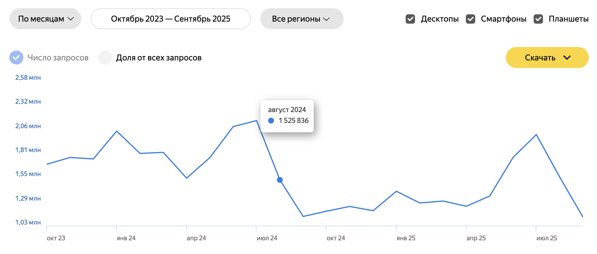 1. Сезонность. Сезоны на маркетплейсах не совпадают с календарными: например, купальниками начинают интересоваться еще в мае, а уже в августе показатели резко падают. В сентябре интерес очень низкий, несмотря на продолжающийся бархатный сезон.