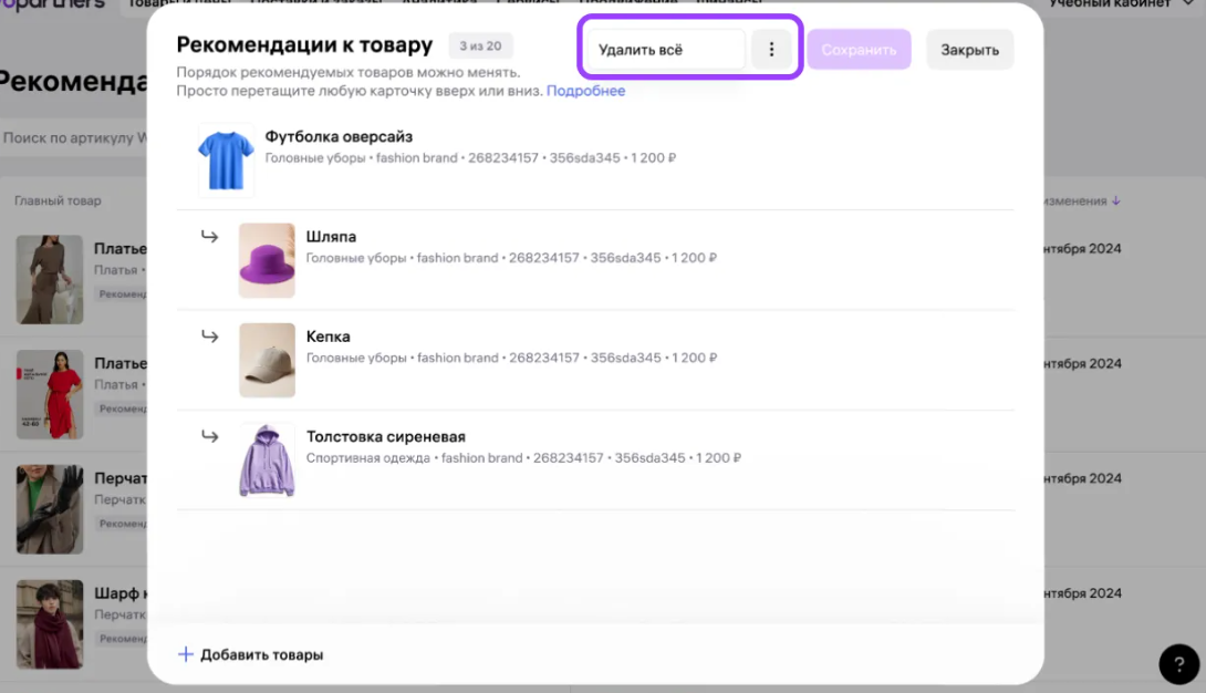 Настройка рекомендаций в карточке товара на Wildberries: как добавить, изменить или убрать товары