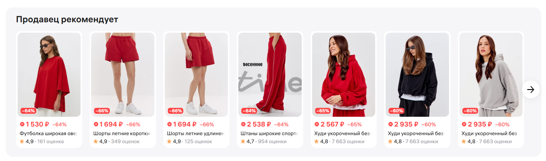 Блок рекомендации продавца называется «Продавец рекомендует».