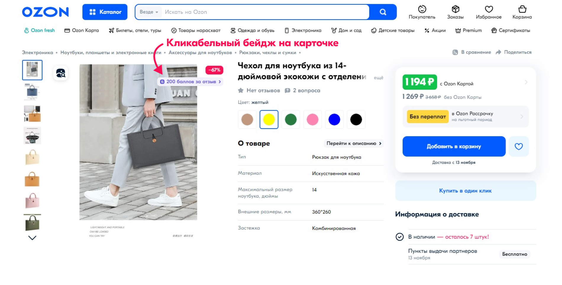 Карточка получит кликабельный бейдж, вы — отклики, а покупатель — баллы, которые сможет использовать на площадке.