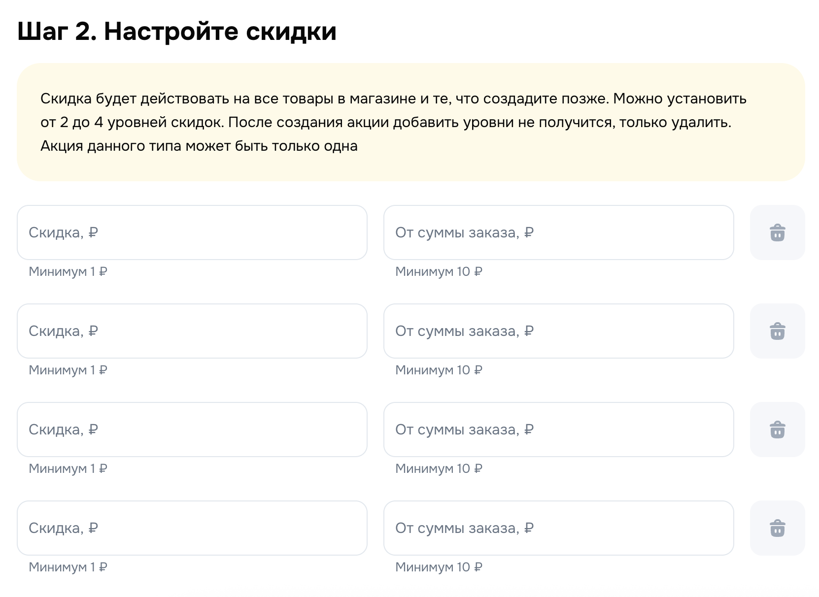 Еще одна опция — многоуровневая скидка: чем больше клиент приобретет у вас, тем выгоднее будет покупка.