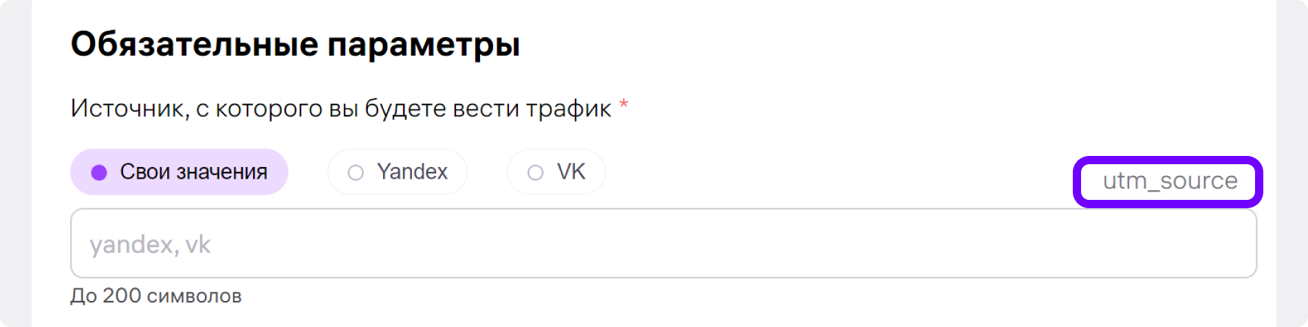 utm_source — определяет вход клиента (например, поисковик Yandex, соцсеть ВКонтакте и прочее);