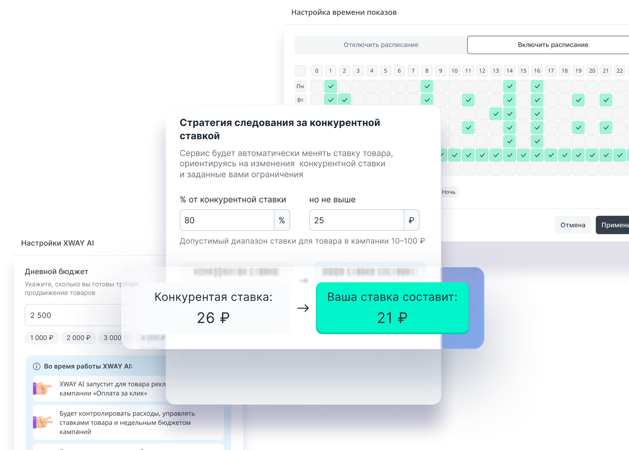 Расписание показов для товаров и кампаний