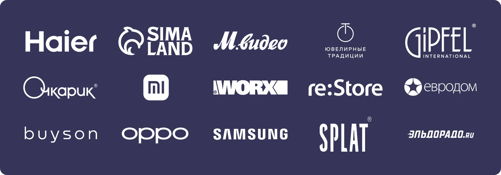 Мы работаем с самыми разными представителями бизнеса. От мини-селлеров и индивидуальных предпринимателей до известных игроков российского ритейла и огромных международных сетей.